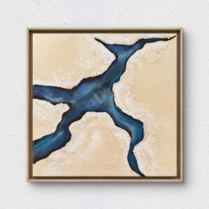 Julia Petutschnig, Du warst nie zerbrochen, 40 x 40 cm, Acrylfarbe und Ölpastellkreide auf Leinwand, Schattenfugenrahmen in Eichenoptik, 2025.